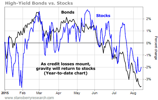 Porter has long recommended watching the high-yield bond market for clues on where the economy and the stock market are headed. As he reminded readers in the August 14 Digest...