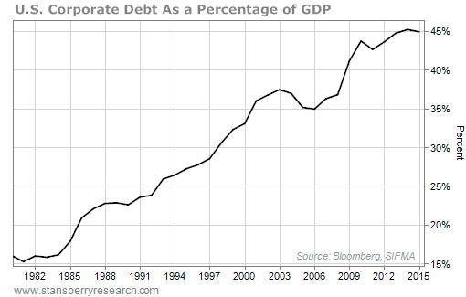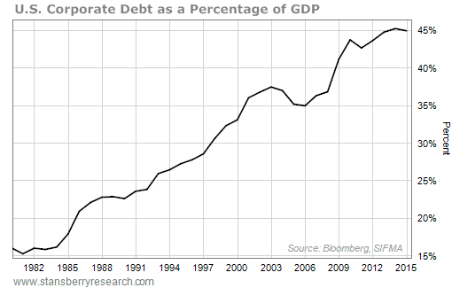 There has been an incredible increase in the amount of "BBB" corporate debt outstanding in recent years. As we noted earlier, this is technically investment grade. But it's the lowest tier of investment-grade debt – just one tier above "junk."
