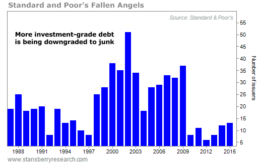 This is dangerous because, as a whole, investment-grade debt isn't what it used to be... It's far less resilient to economic risks. It also means that during the next credit-default cycle (which we believe has already begun) far more investment-grade debt will be downgraded to junk.