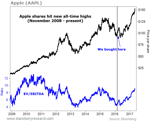 But if you were one of those investors who weren't interested in Apple last year but are thinking about buying now, our colleague Ben Morris has a message for you. He says there's a valuable lesson here. As he explained in an issue of DailyWealth Trader last week...