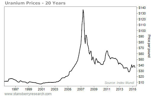 Take uranium, for example. Back in the mid-2000s, uranium was the hottest commodity around. My friend Rick Rule organized several large investment funds to buy uranium back in the late 1990s as he correctly judged a severe mismatch between current supplies, current prices, and the known demand of the global market. He was right, and investors in his funds did incredibly well. They made more money than I can imagine.
