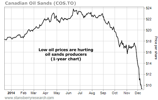 Canadian Oil Sands is one of the largest pure plays on the area. As you probably suspect, its shares are suffering...