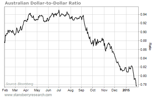 This, combined with a soaring U.S. dollar, all adds to a collapse in the Australian dollar...