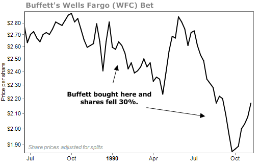 In 1989 and 1990, legendary investor Warren Buffett bought big stakes in Wells Fargo (WFC). Things did not work out well...