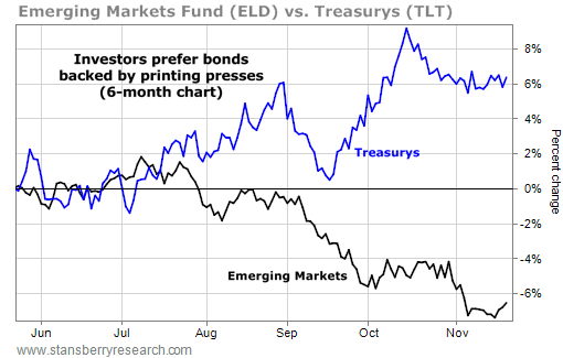 And it's also clear by looking at the colossal bubble that has formed in emerging-market debt. A brilliant New York hedge-fund manager pointed out that between 2009 and 2012, nearly $400 billion flowed into emerging-market credit markets – about four times more than average rates over the previous 10 years.