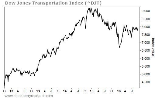 The U.S. transportation sector has been in decline since 2014, based on the Dow Jones Transportation Average. Transportation stocks have been a leading economic indicator for more than 100 years, as transportation reflects the growth (or decline) in orders for consumer and durable goods.