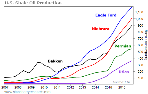 Another obvious sign: The global oil cartel OPEC has just agreed to cut oil production, but the amount of oil being produced at America's top fields continues to grow. America is now producing so much oil that the OPEC cuts will only result in about a 1% decrease in global supply.