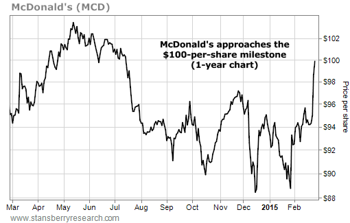 McDonald's shares surged 5% higher in late January following news that CEO Jim Skinner was stepping down. That left the company more vulnerable to an activist campaign by Ackman or another big investor.