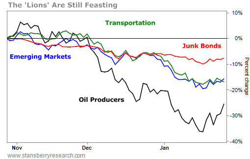 The next big "bust" in our economy is going to come from the financial side. Somewhere out there, right now, there's a firm that's been speculating on energy prices. No one suspects it's in trouble today because it has been hiding the losses... doubling down... praying for a bounce in energy so that it can escape. I don't know which firm it is... but I know it's out there somewhere.
