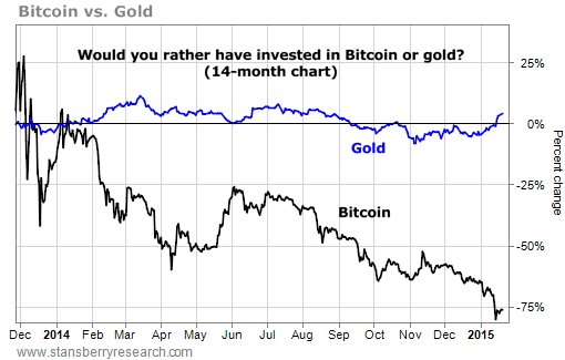 Bitcoin stole the headlines in late 2013. The virtual currency staged a massive rally. And many readers wrote in to tell us we were missing the boat. But we were confident that we were on the right side of the argument. (So was Steve Sjuggerud, who wrote his dissertation on currencies.) Our money was still on gold.
