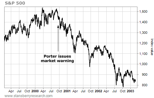 In the October 2000 issue of Stansberry's Investment Advisory, Porter wrote...