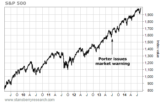 In hindsight, the timing of the warning was spot on. (As you'll see, our predictions aren't always so prescient.) And the Stansberry's Investment Advisory portfolio actually had already been shorting prior to this market call.