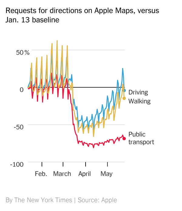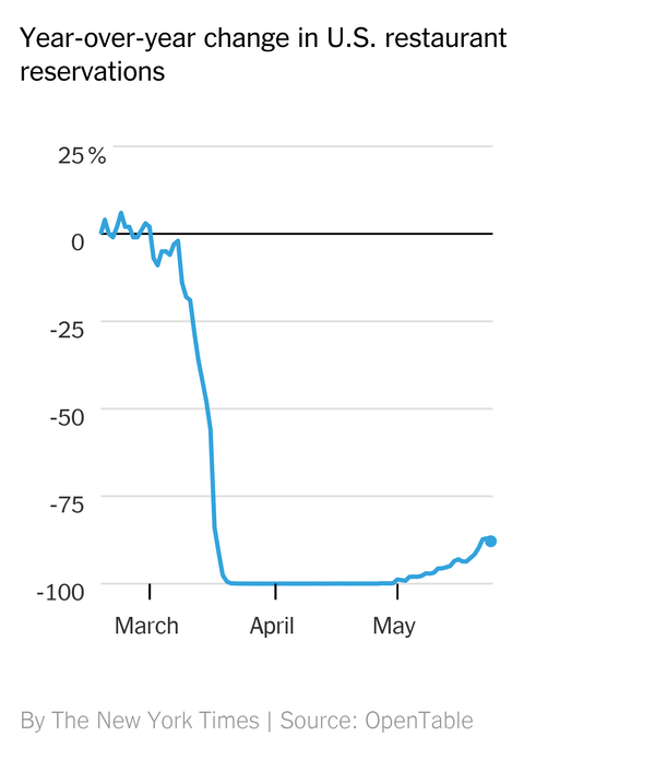 3) The New York Times' Dealbook has five charts that show how the U.S. is slowly reopening: