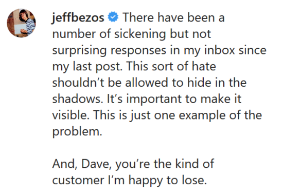 5) Kudos to Amazon (AMZN) CEO Jeff Bezos. One of his customers sent him this heinous, vulgar e-mail, which Bezos shared on Instagram with some of the profanity unredacted: