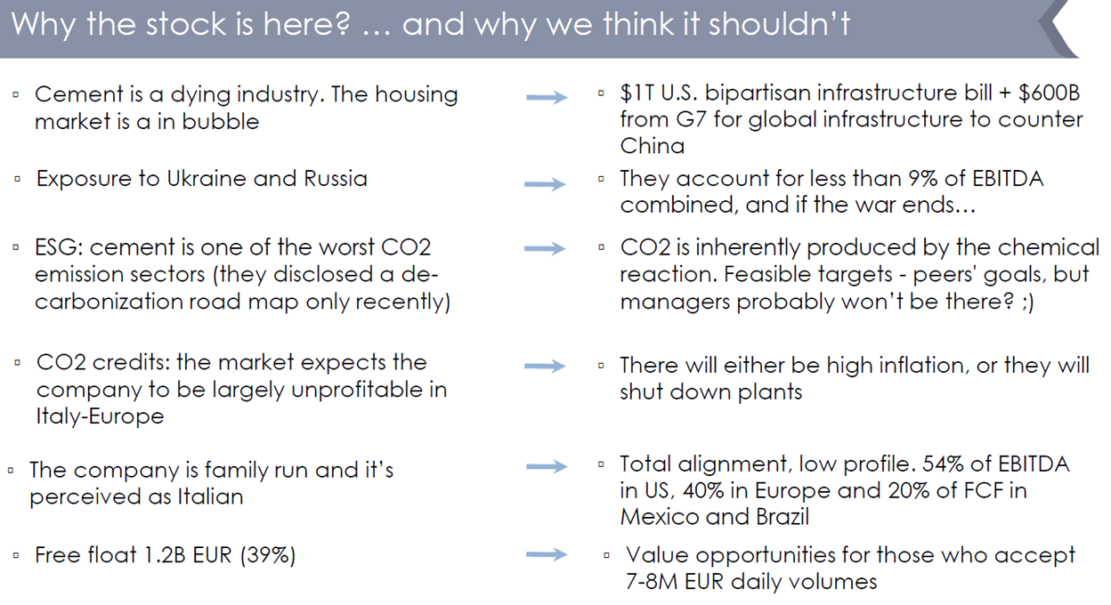 It was pitched by Ludovico Latmiral and Michele Campagner of an Italian family office called Samhita Investments. You can see their presentation here, and below are a few of the key slides: