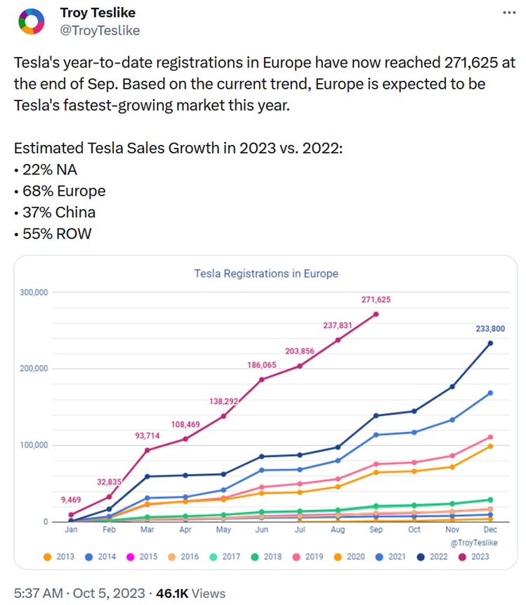 Nothing. These are Troy's numbers. You're just comparing them the very low numbers Tesla had in Europe in the first 3 quarters of 2022. So it will end up being a 58% increase for all of 2023 over 2022. But the tide turned in the fourth quarter of 2022 and sales have been going down ever since.
