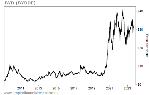 Wow, look at BYD's stock chart (its current market cap is $91 billion):