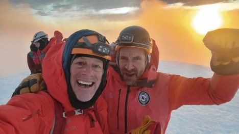 3) I summited Cotopaxi, the world's highest active volcano (19,347 feet), this morning. Here's a picture of my guide Paul and me at the top, with the sunrise behind us: