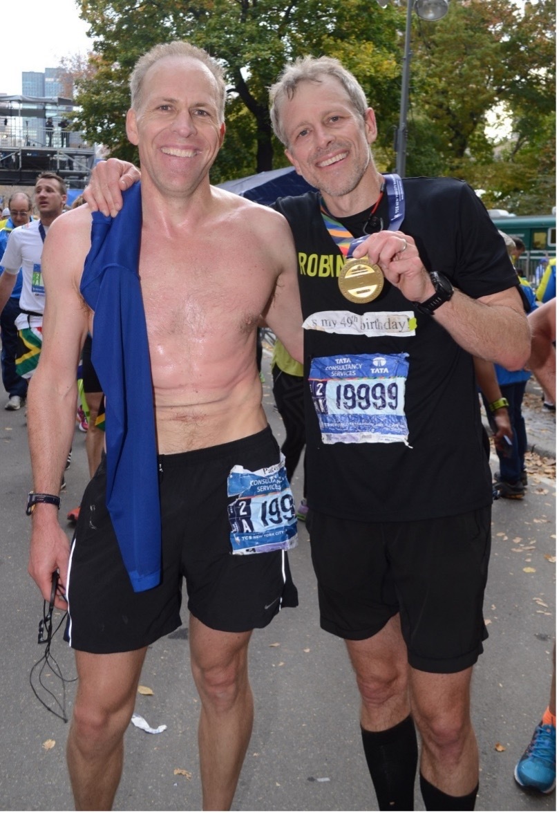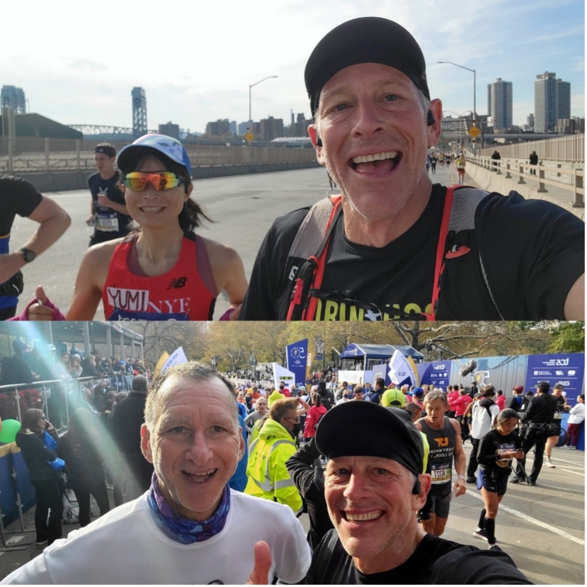 Here are pictures of me today with Yumi, who finished in 3:46:07, and Rick, who, running his 15th NYC Marathon, finished at 4:49:09: