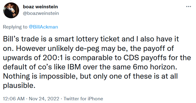 But I don't think it's a bad investment – nor does famed investor Boaz Weinstein of Saba Capital, who tweeted: