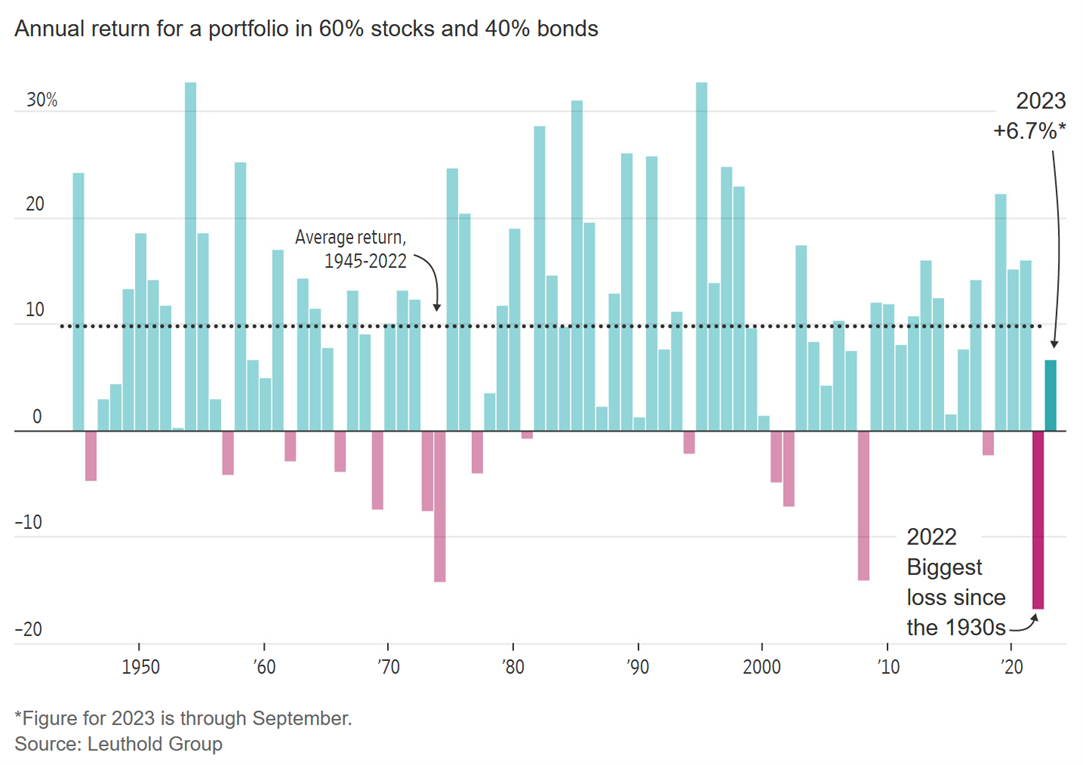 The tried-and-true 60-40 portfolio lost 17% last year, its worst performance since at least 1937, according to Leuthold Group analysis. Even with a 14% gain in the S&P 500 helping the strategy recover in 2023, stocks and bonds have moved in tandem, more over the past three years than any time since 1997, Standpoint Asset Management analysis shows.