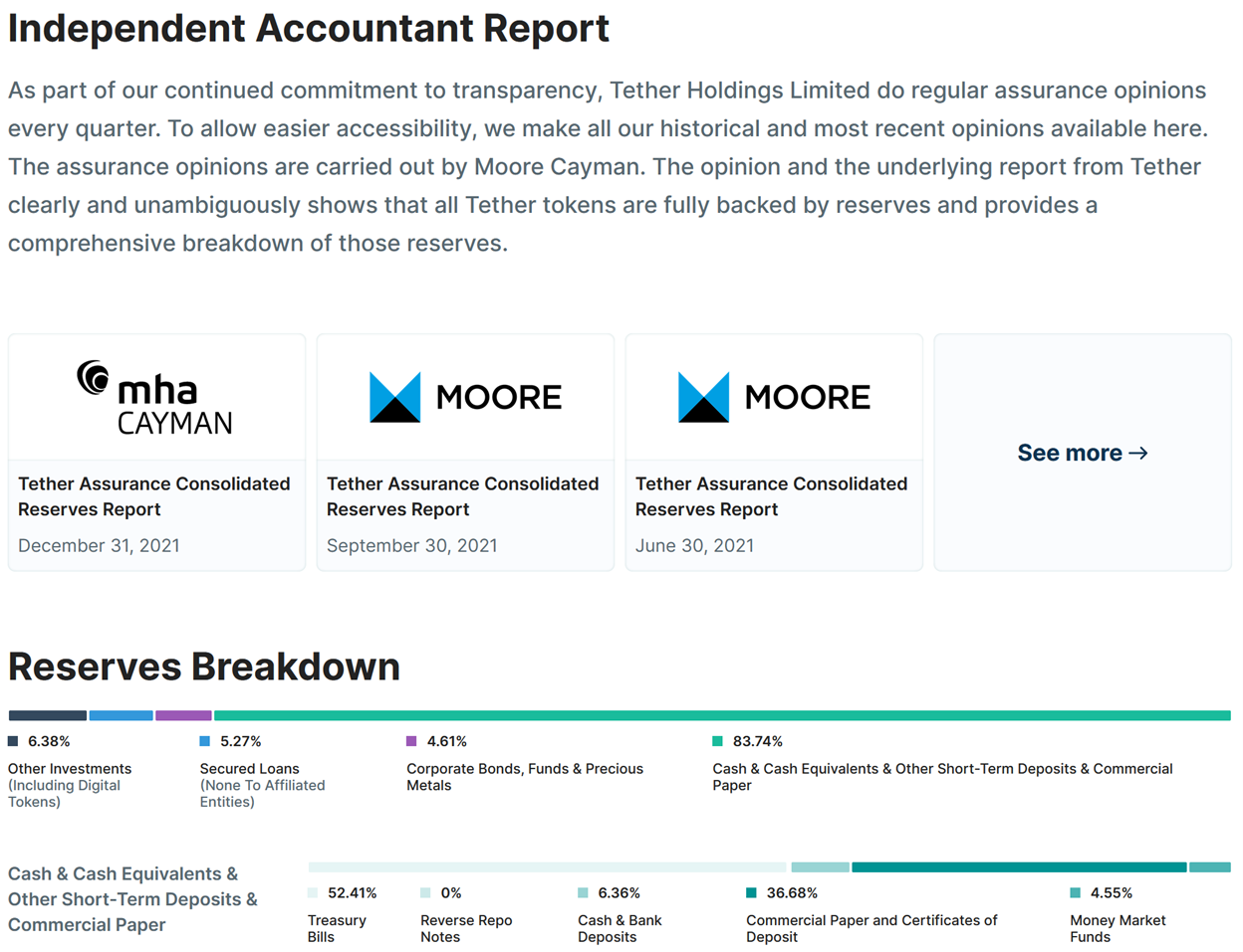 Tether Limited publishes this "transparency" report on its website, which looks very official: