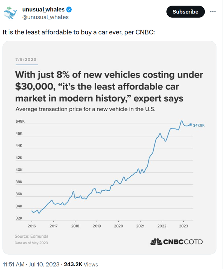2) I'm not quite sure what to make of this, but it's interesting... New car prices are at their highest level ever: