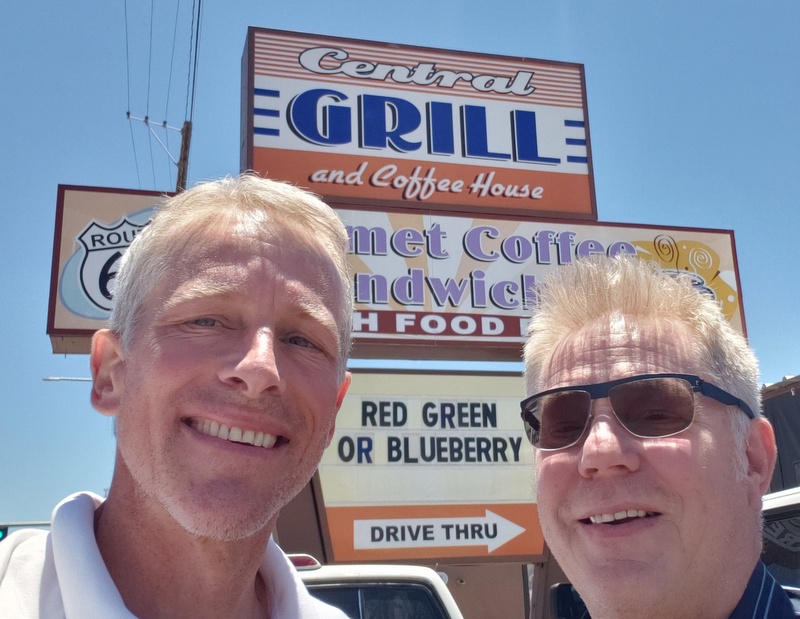 3) In response to my June 18 e-mail that I was going to be in Albuquerque for the National Senior Games over the weekend, longtime reader Tim McCord reached out and we had a lovely meal at the classic Central Grill. Here's a picture of us...