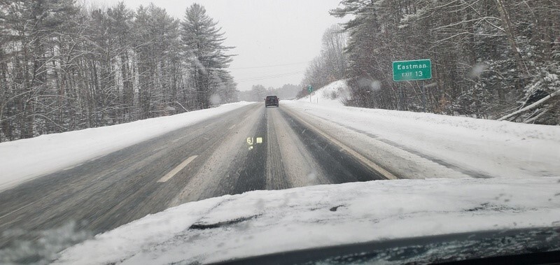 The conditions on the roads were treacherous! Here are pictures of Interstate 89 I took through the windshield on my way there and the top of our driveway on the way back: