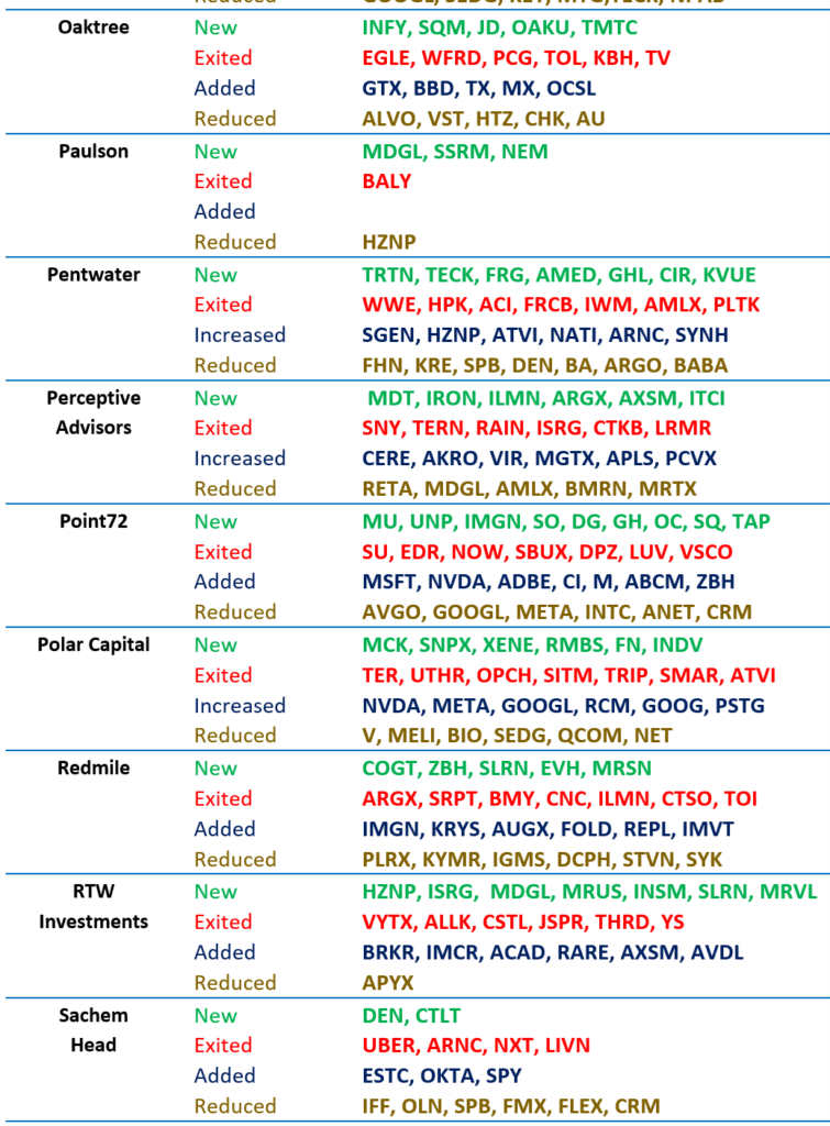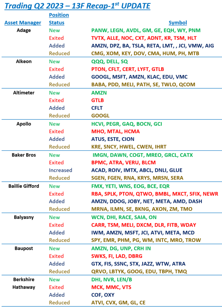 5) Lastly, my friend Scott Tashman of Outset Global Trading sent me a summary of the second-quarter 13-Fs for 61 of the largest, best-known money managers. I've included the list at the end of this e-mail, but below are the ones I follow most closely (and know personally):