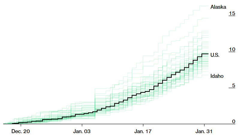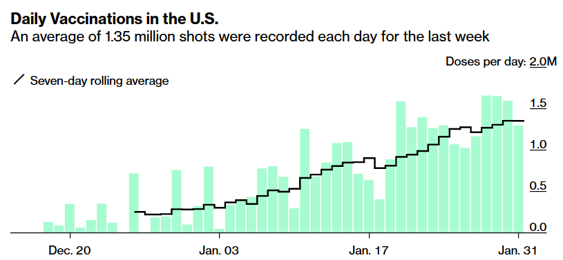 3) A vaccine is, of course, useless unless it's actually injected into someone's arm – and the good news is that the U.S. is now vaccinating 1.35 million people per day (source):