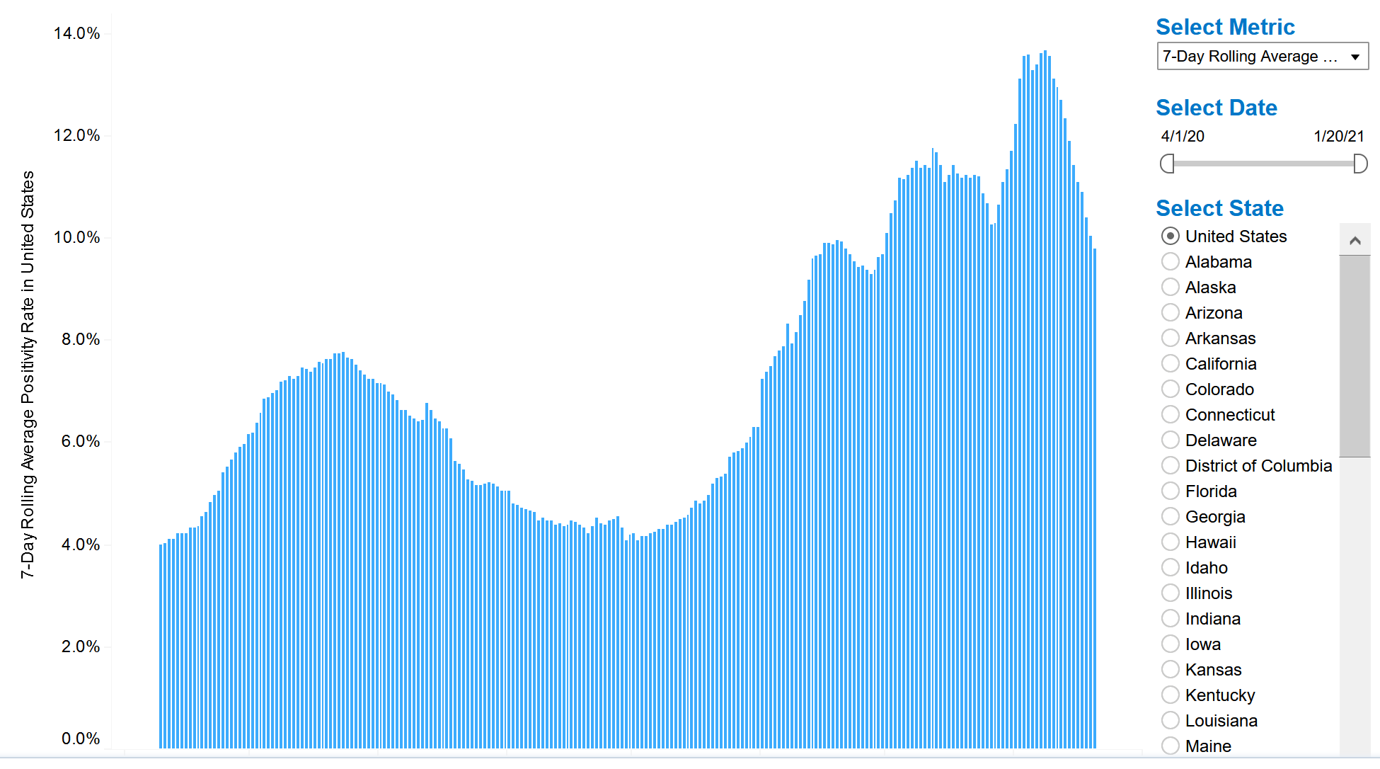 The positivity rate is also falling (source):