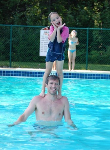 And balancing on my shoulders (in the pool so that she wouldn't get hurt if she fell):