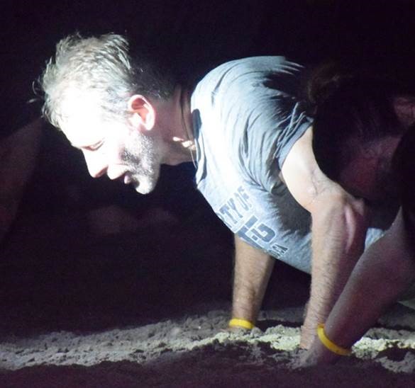 Here's a picture of me shortly after arriving at the beach after the swim (at about 4am on the first of three nights). I thought we might get a break, but noooooo. The SEALs yelled at us for being so slow and made us do push-ups in the sand and cover ourselves in mud: