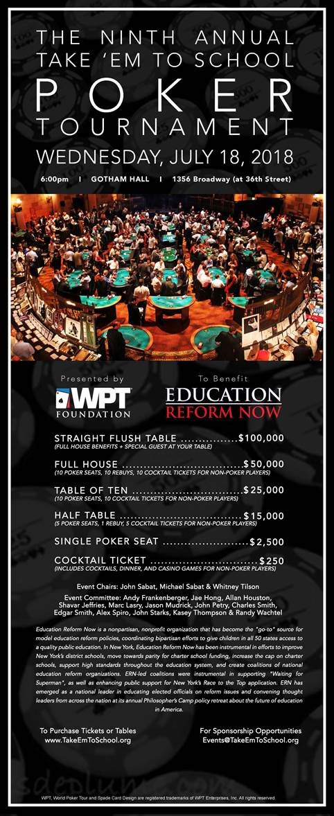 3. The 9th annual Take 'Em to School Poker Tournament & Casino Night, which I'm co-chairing, is coming up on Wednesday, July 18th at Gotham Hall in NYC. It benefits Education Reform Now, a non-profit organization committed to ensuring that all children have access a high-quality public education regardless of race, gender, geography or socioeconomic status.