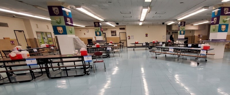 Then, I sent folks into the building and they received the shot in the cafeteria: