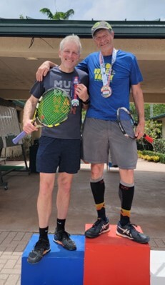 He's currently the No. 1 65-year-old player in the U.S. and No. 2 in the world, so we got smoked 6-1, 6-0. That knocked us into the bronze medal match yesterday, which we won 6-3, 6-0. Here's a picture of us getting our medals (Vines is standing next to me):