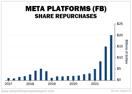 Investors also appear to be missing Meta's booming share repurchases, as you can see in this chart: