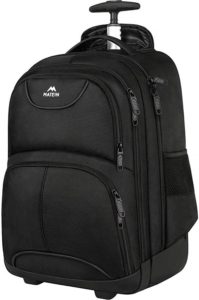 After doing some research, I bought the Matein Waterproof College Wheeled Travel Backpack. Here's a picture of it: