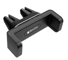 In our car, we have this $25 phone holder that attaches with a suction cup to the windshield, and when I travel and rent a car, I bring this small $20 one with me that attaches to the air vent in any car: