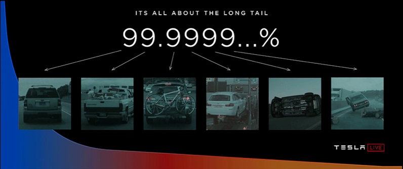 A true Level 5 autonomous car will need to handle every situation safely 99.9999% of the time. Attaining those last 9s of reliability is going to be incredibly difficult, but I predict that the first company to do it will be one with an enormous, real world dataset – namely, Tesla.