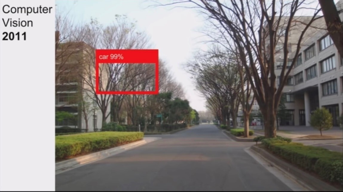 When Andrej Karpathy, Tesla's director of AI and Autopilot Vision, started his PhD at Stanford in 2011, computer vision was primitive by today's standards. When he would run state-of-the-art visual recognition detectors, it wasn't uncommon to get bizarre outcomes in which the computer, for example, would detect with 99% confidence cars in trees, as you can see in this screenshot: