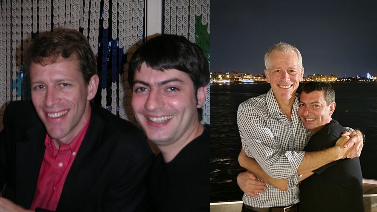 2) The first day of the Value Investing Seminar I'm co-hosting here in Trani, Italy went well, with presentations by nine speakers, including myself, my friend and former partner Glenn Tongue, and my co-host, Ciccio Azzollini. Here's a picture of us from the first time I visited 18 years ago and last night (I know, I know – neither of us has aged a day, right?):