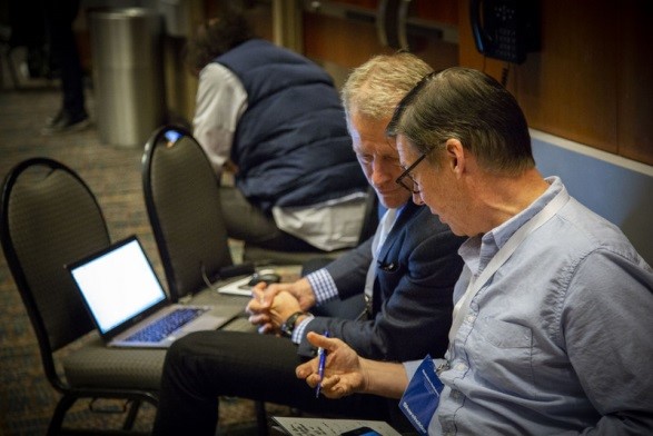 I then moderated a discussion on Berkshire with Kai Pan, the analyst who covers Berkshire for Morgan Stanley, and Andy Serwer, the editor-in-chief of Yahoo Finance – here's a picture of us: