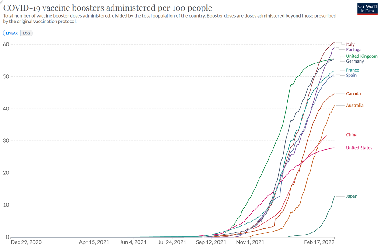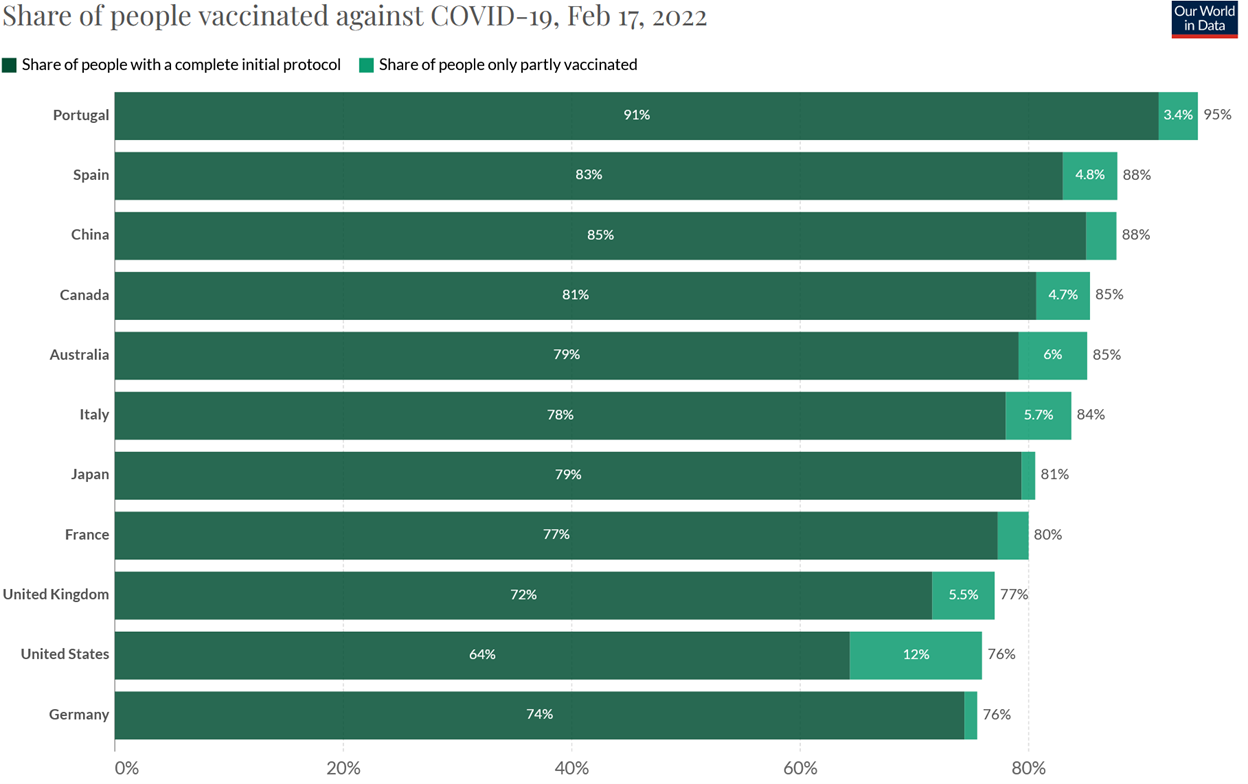 Over the past year or so, I've harshly and unequivocally criticized quite a few people, media outlets, and political parties for misleading their followers about the safety and efficacy of vaccines, which is a major reason why, as of today, 24% of Americans haven't even had a single shot, and 72% aren't boosted, trailing nearly every other wealthy country, as you can see in this chart (source):