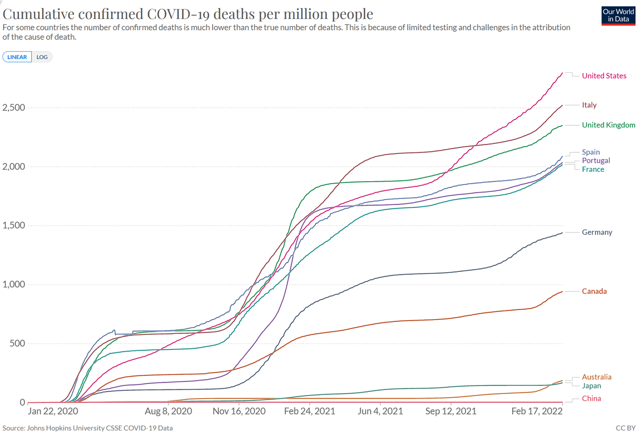 Primarily as a result of this (though other factors are also at work, most importantly a higher obesity rate), we have the highest cumulative COVID death rate among our peer countries: