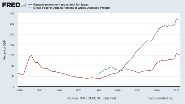 The most obvious example is Japan, which has accumulated a lot more debt relative to GDP than we have but has defied predictions of an imminent debt crisis for decades: