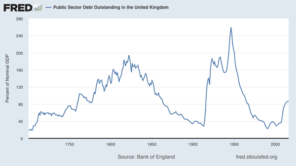 An even more striking example is Britain, which spent much of the 19th and 20th centuries with debt levels far above that of the United States today, without ever facing a debt crisis: