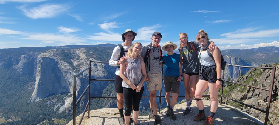 Here's a picture of all of us overlooking the Valley, with El Capitan (which I climbed a year ago) in the background on the left. I've posted details and pictures of our first two days here and here.