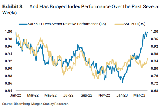 The outsized contribution of tech stocks to overall S&P Index performance is exhibited here: